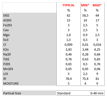 * The typical specifications analysis of the Natural Gypsum, Limestone and Pozzolana are indicative